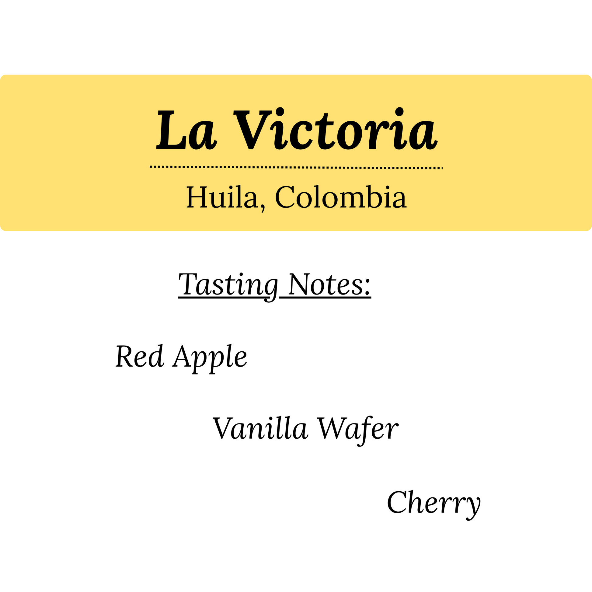 La Victoria is a communal lot, coming from various small producers located near Santa Maria and Palermo in Huila, Colombia. With farms sitting at 1,700 to 2,300 masl near the foothills of the Huila Volcano, both terroir and elevation contribute to this coffee's vibrant red fruit qualities. In the cup, we taste remarkably clear red berries, undertones of vanilla, and a sweet citrus finish.